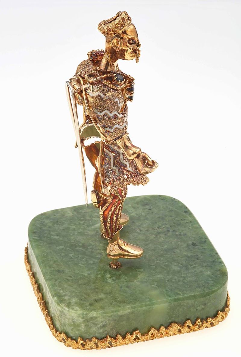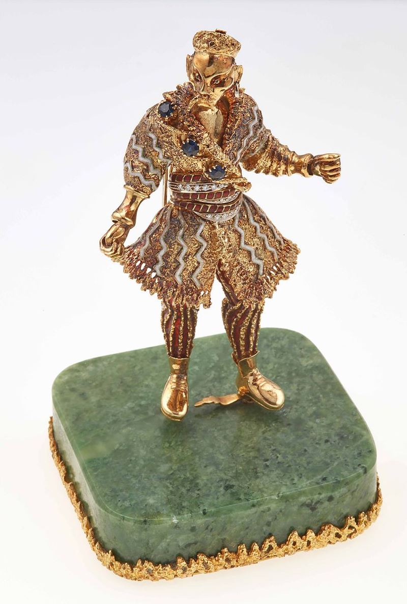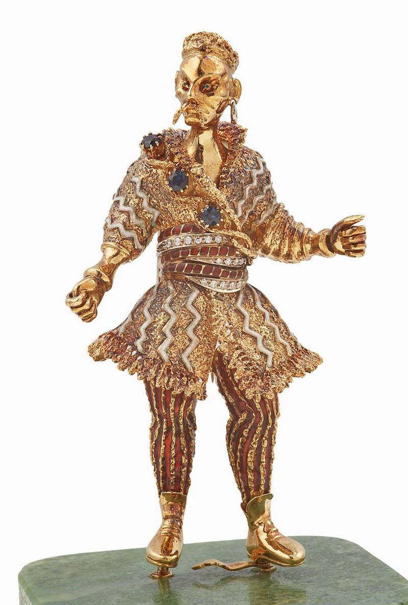 Statuina con diamanti, zaffiri e smalti policromi