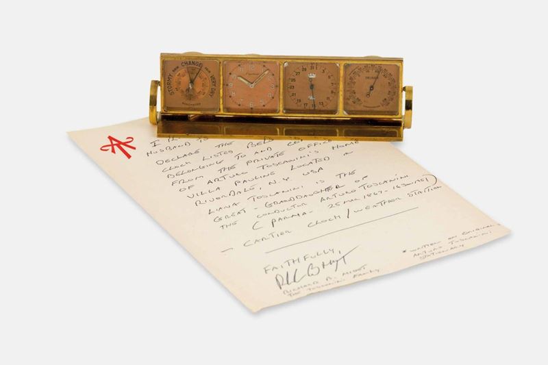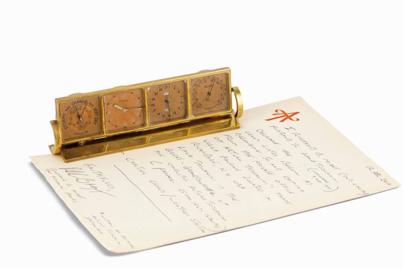 CARTIER - Raro orologio da tavolo ANGELUS Foursome Cartier 8 days, con orologio, stazione meteorologica, barometro, calendario, appartenuto al direttore d'orchestra Arturo Toscanini