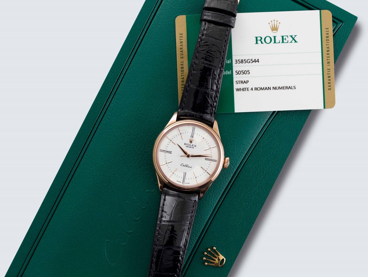 ROLEX - Elegante Cellini ref. 50505, automatico, in oro rosa 18ct., circa 2015, completo di scatola e garanzia