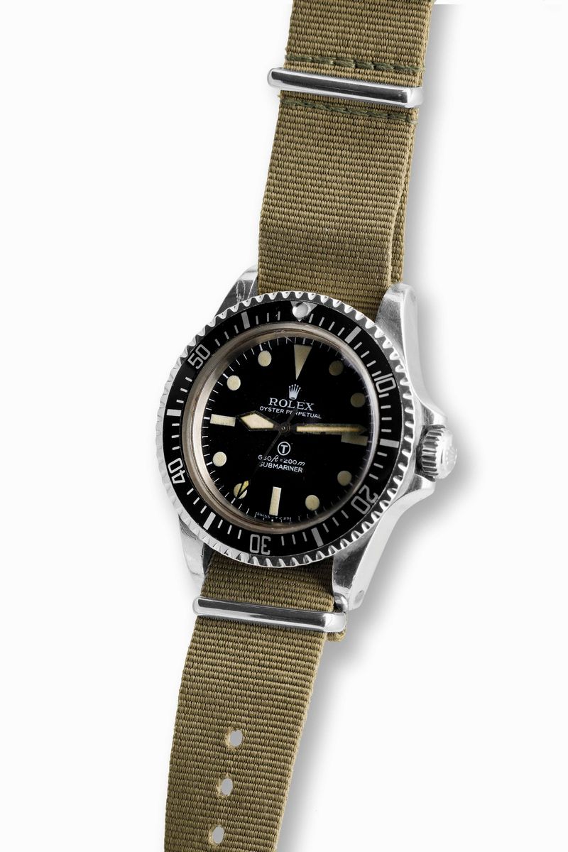 I Submariner “MilSub” sono stati realizzati su richiesta speciale del Ministero della Difesa britannico, tra il 1972 e il 1976. Rispetto ai Submariner dell’epoca, su questa specifica referenza sono state apportate modifiche su richiesta del MOD , per soddisfare le esigenze dei militari. I requisiti includono anse a barretta fissa, cinturino in nylon NATO, lunetta graduata di 60 minuti di grandi dimensioni, grandi lancette a spada e un quadrante luminoso con una T cerchiata che indica l'uso di trizio radioattivo. Inoltre, ogni orologio assegnato alla British Army vennero incisi sul fondello in modo univoco, con numeri che possono essere utilizzati per identificare il codice militare della British Royal Army, il codice NATO, il numero di emissione e l'anno di emissione. Il MilSub si divide in tre referenze: 5513, 5517/5513 e 5517, con 4 diverse tipologie di quadranti disponibili, tra cui quella dell’esemplare in oggetto ovvero il “maxi dial”.