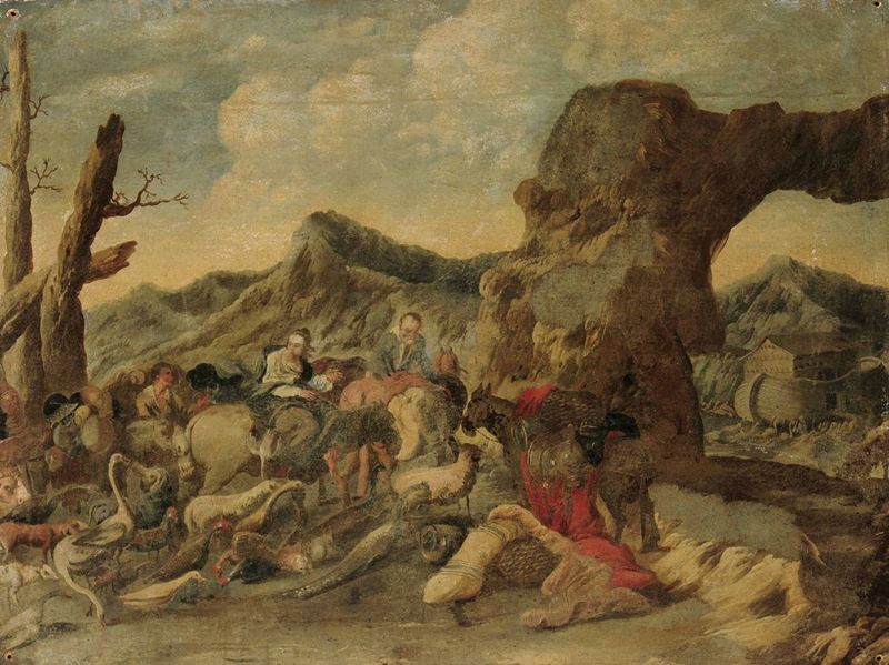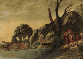 Antonio Travi detto il Sestri (Sestri Ponente 1608 - Genova 1665) Figure con armenti in un paesaggio