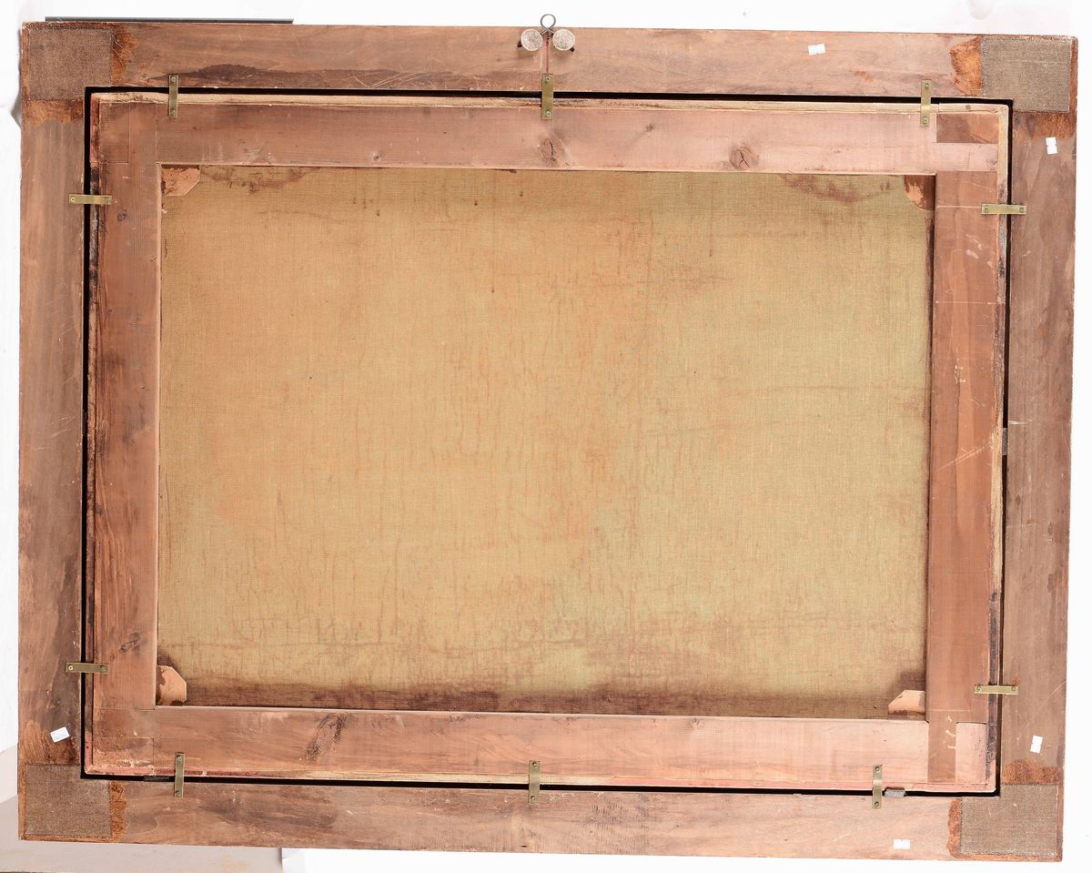 coppia di dipinti ad olio su tela, cm 90x121 entro cornici dorate