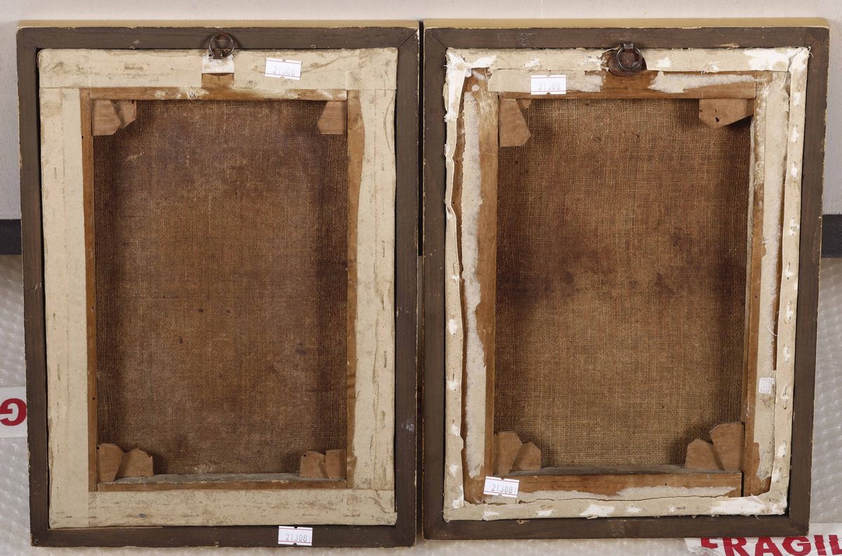 coppia di dipinti ad olio su tela, cm 30x21 entro cornice dorata