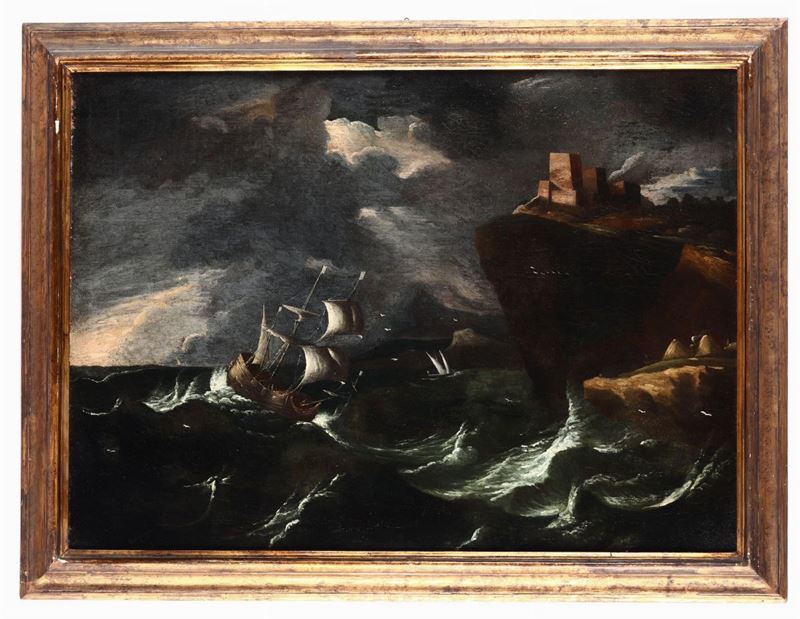 Giovanni Grevenbroeck detto il Solfarolo (? 1650 - Milano 1699) e imitatore di Marina al chiaro di luna Scena di tempesta [..]