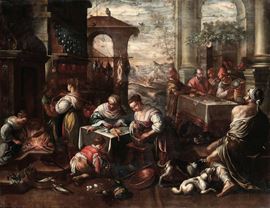 Leandro Bassano (Bassano del Grappa 1557 - Venezia 1622), attribuito a La cena del ricco Epulone