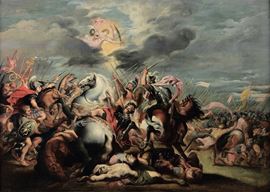 Scuola del Nord Europa dell'inizio del XVIII secolo Battaglia con cavalieri