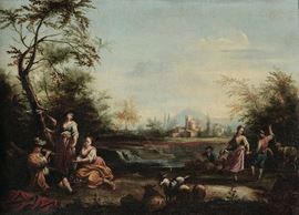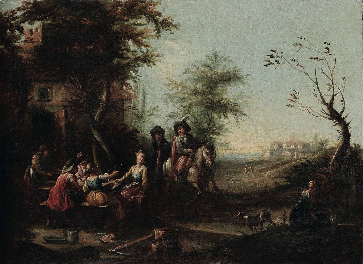 Scuola veneta del XVIII secolo Paesaggi con scene popolari