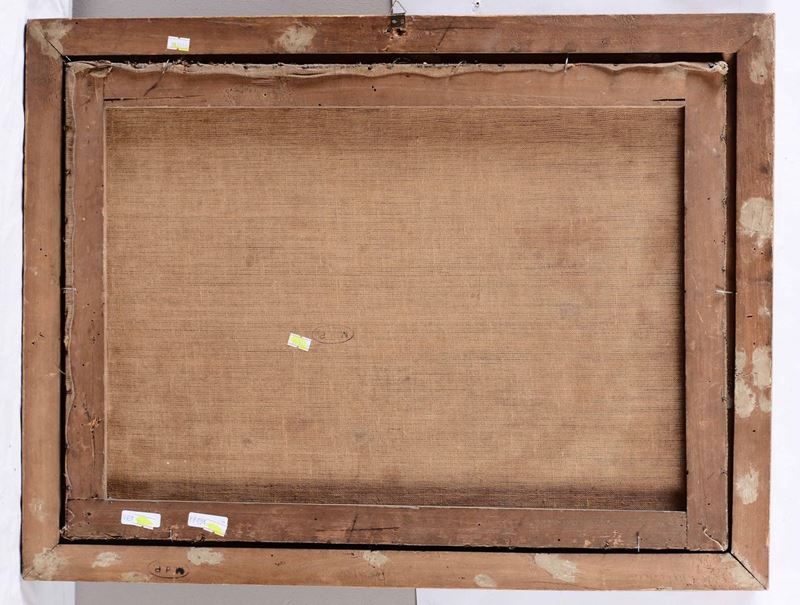 coppia di dipinti ad olio su tela, cm 45x64 entro cornici dorate