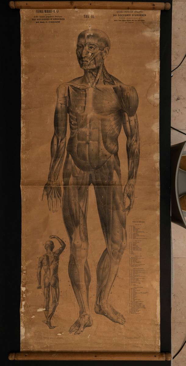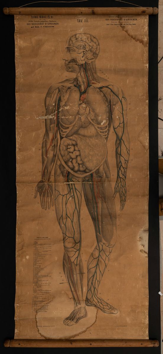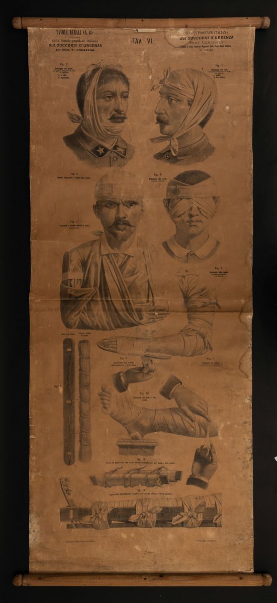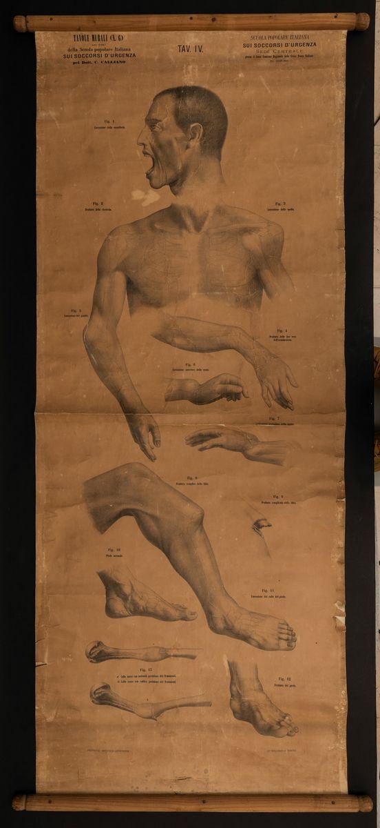 Lotto di cinque tavole murali sui soccorsi d'emergenza n.1,2,3,4,6 del Dott. Calliano originali.