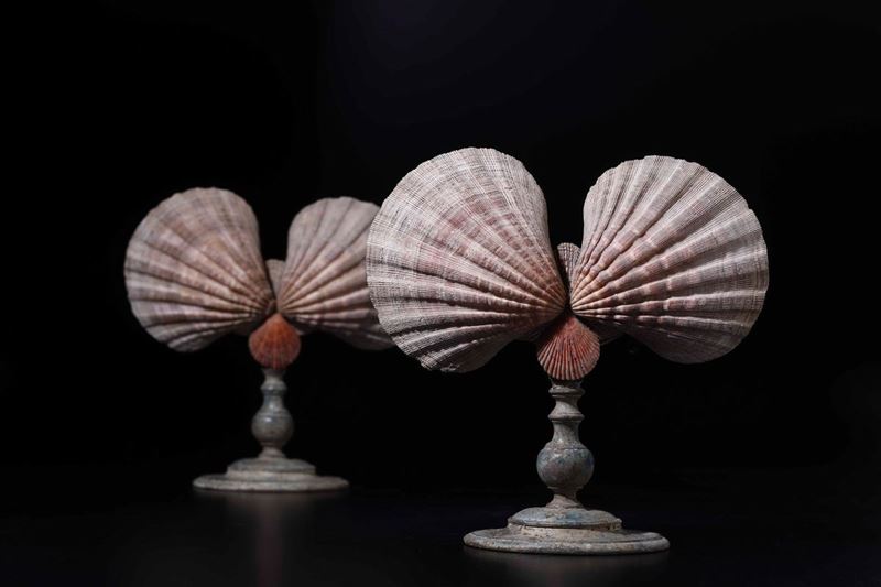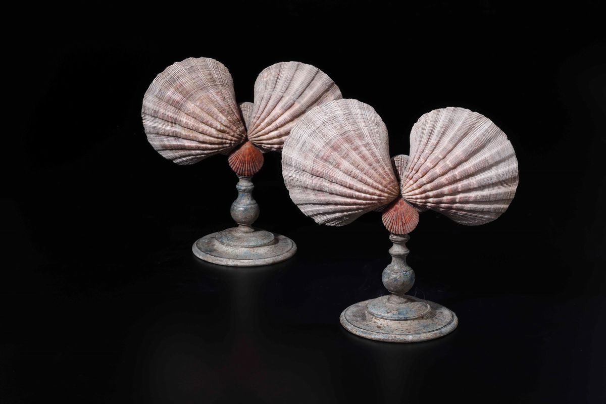 Coppia di ventoline con valve di conchiglia Pecten