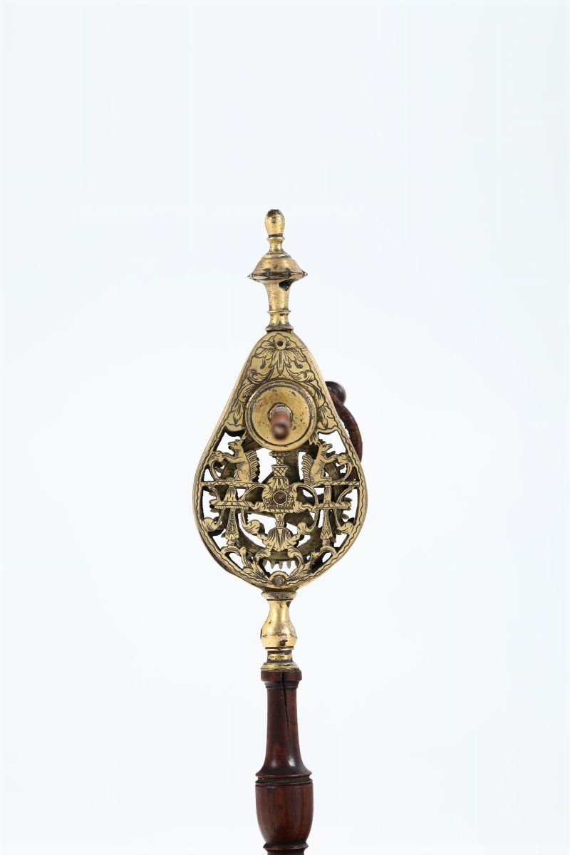 Filatoio in bronzo dorato traforato e inciso, Europa XVIII secolo