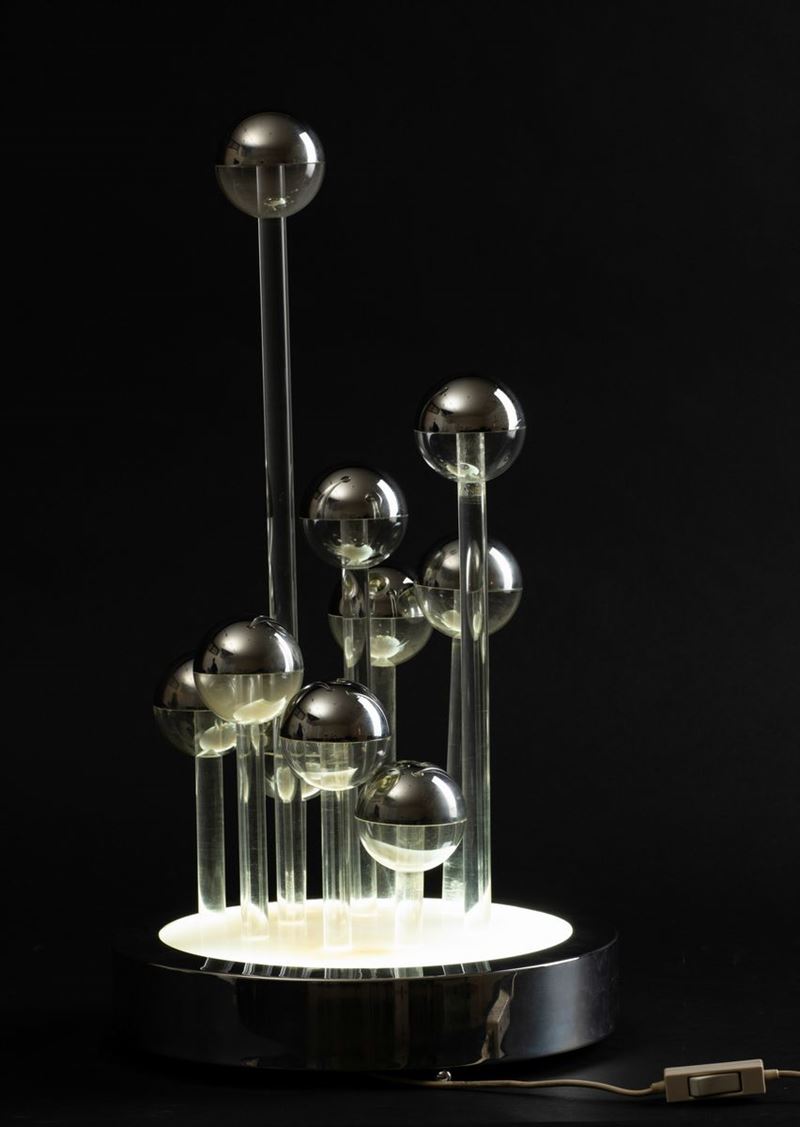 Lampada vintage in metallo cromato e plastica perspex, 1970