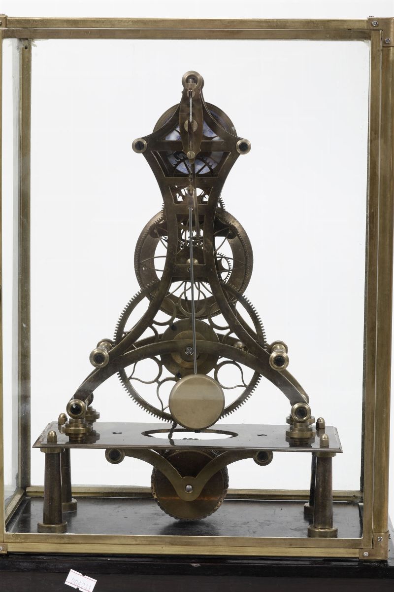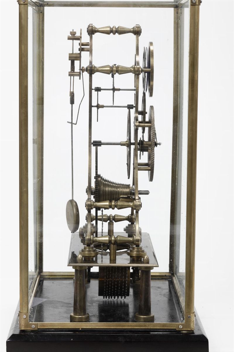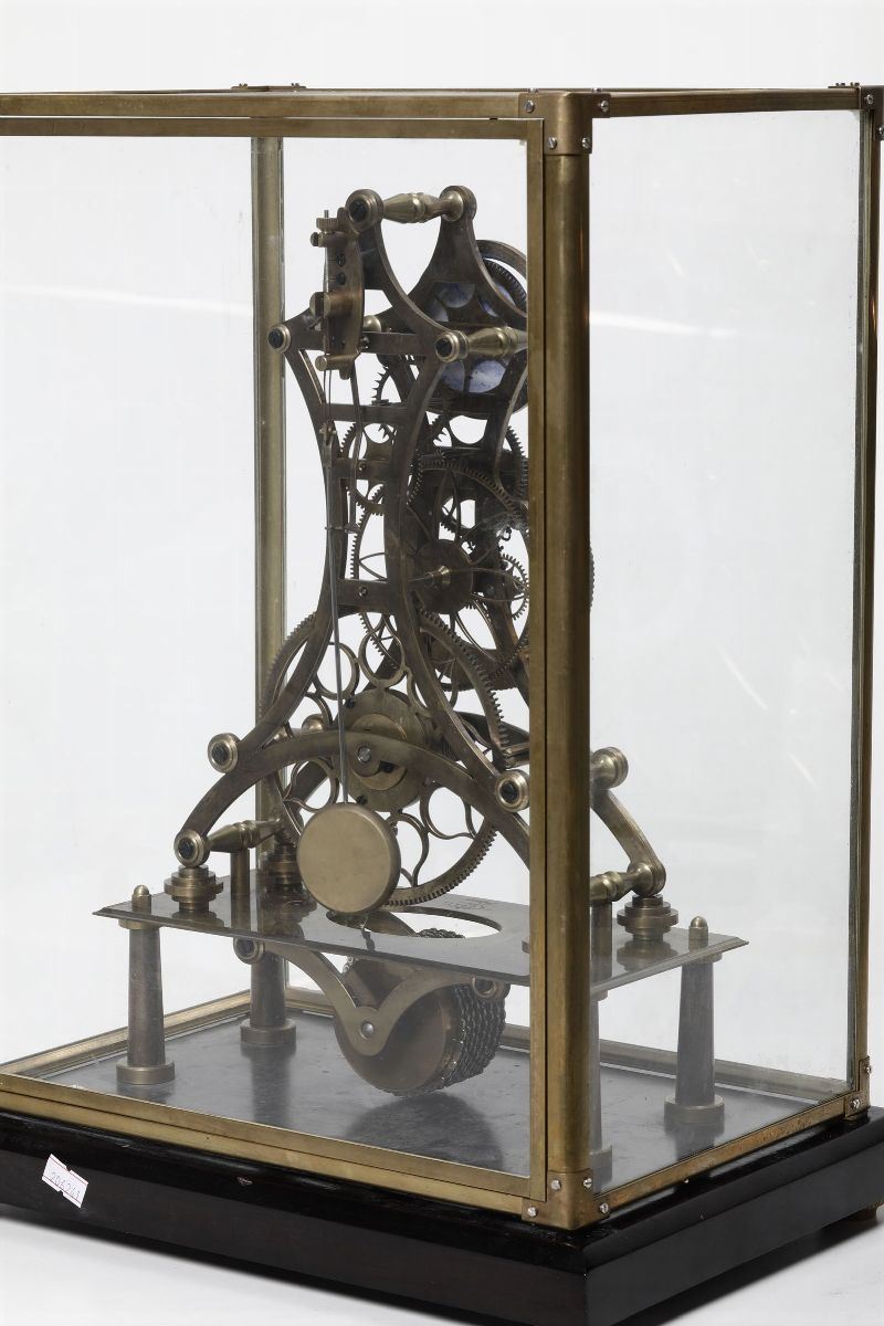 Riproduzione di orologio scheletrico in ottone, firmato Franz Denk in Wien, XX secolo