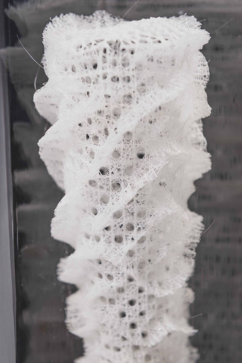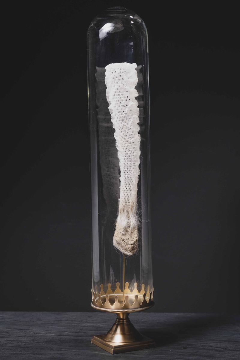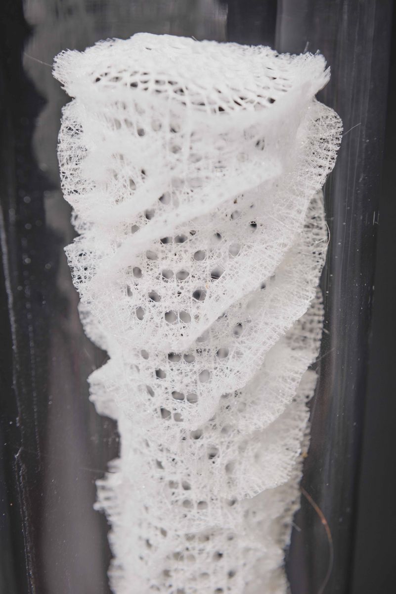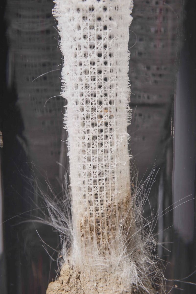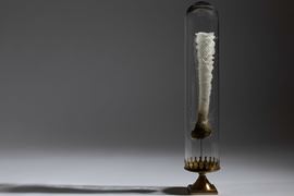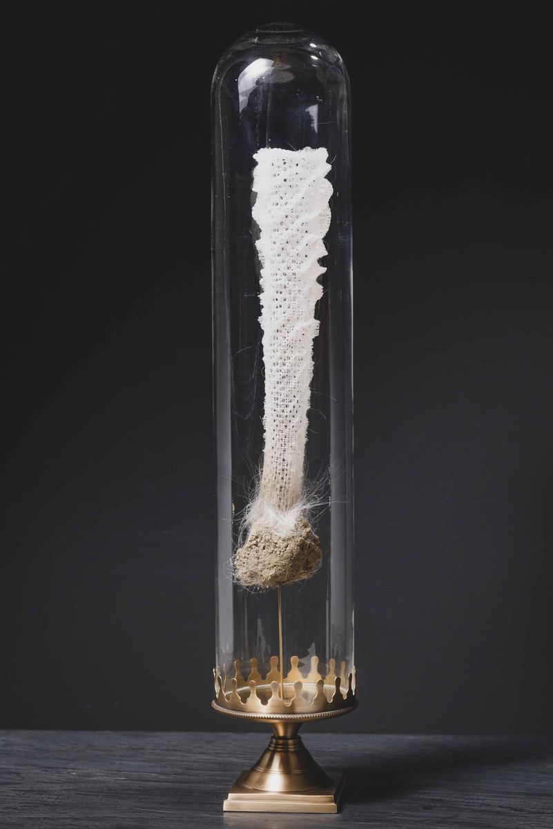 Spugna silicea Euplectella aspergillum in campana di vetro, base in ottone