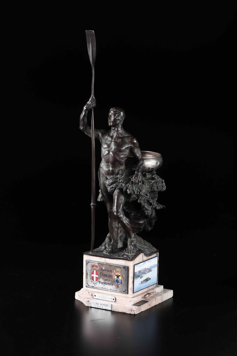 Trofeo remiero Coppa Principe di Piemonte Bronzo fuso e cesellato, Argento sbalzato, smalti policromi e marmo.