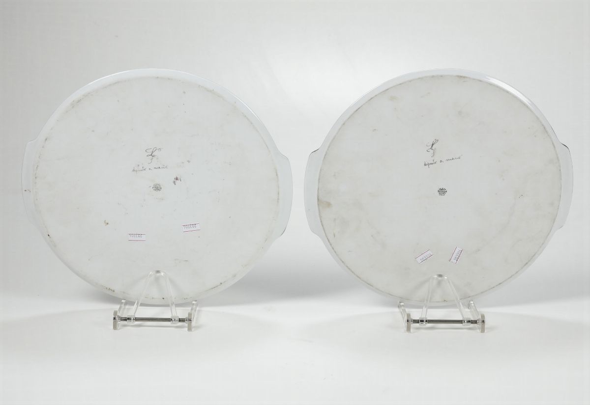 Coppia di vassoi Anonimo pittore indipendente su porcellana Richard Ginori, XX secolo