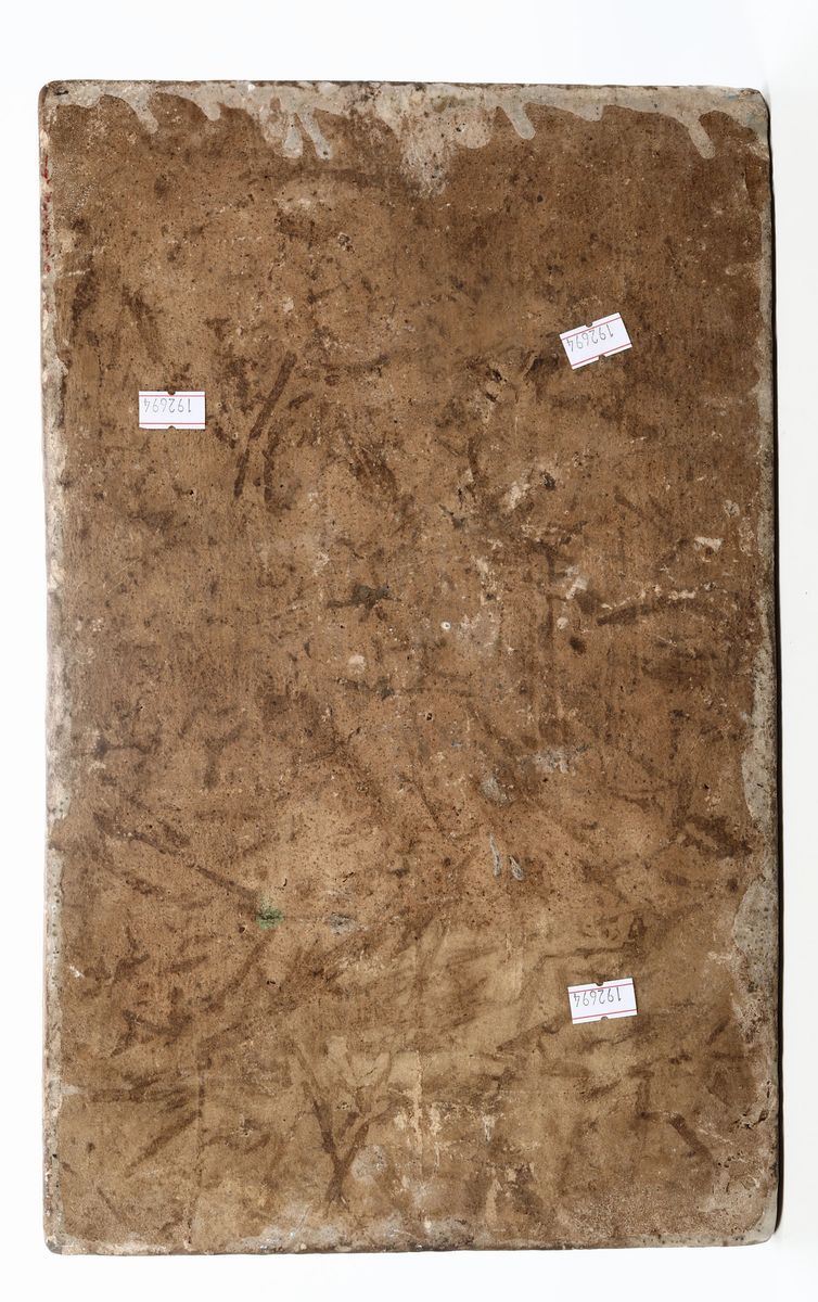 Ceramica silicea. Dimensioni: cm 37,8 x 23,7. Buono stato di conservazione, craquelures