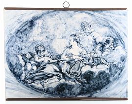 La decorazione è ispirata alla “scenografia barocca” della maiolica savonese seicentesca e settecentesca ed è eseguita da Manlio Trucco uno dei maggiori artefici della rinascita artistica albisolese degli anni venti-trenta del XX secolo