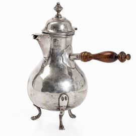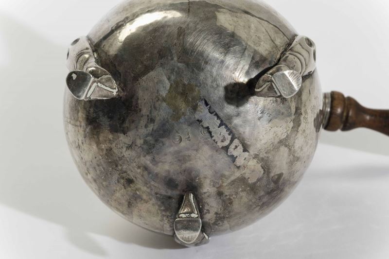 Caffettiera veneta in argento fuso, sbalzato e cesellato. Veneto, XVII secolo