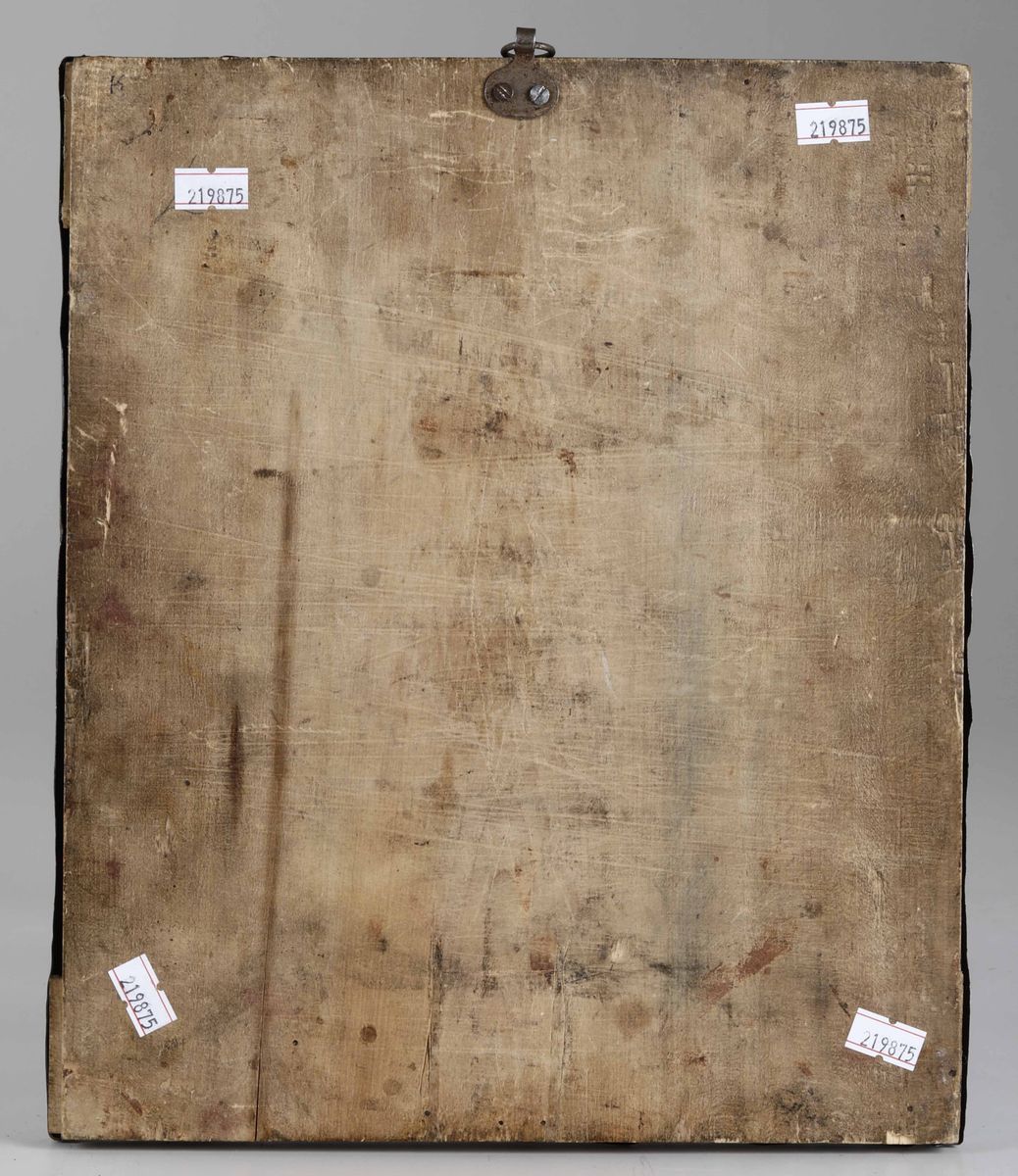 Icona con riza in metallo argentato raffigurante San Nicola. Russia XIX-XX secolo