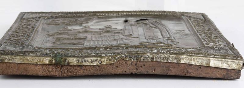 Icona con riza in metallo argentato raffigurante San Serghie di Radonej. Mosca XIX secolo