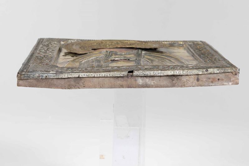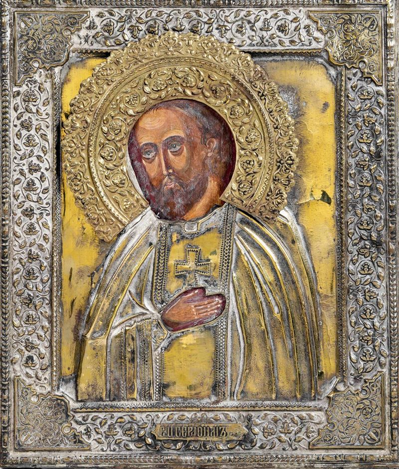 Icona con riza in metallo dorato raffigurante San Sarafino di Sarov. Mosca XIX-XX secolo