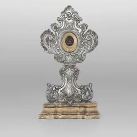 Reliquiario in argento sbalzato e cesellato. Genova, marchio della “torretta†per l’anno (1)764