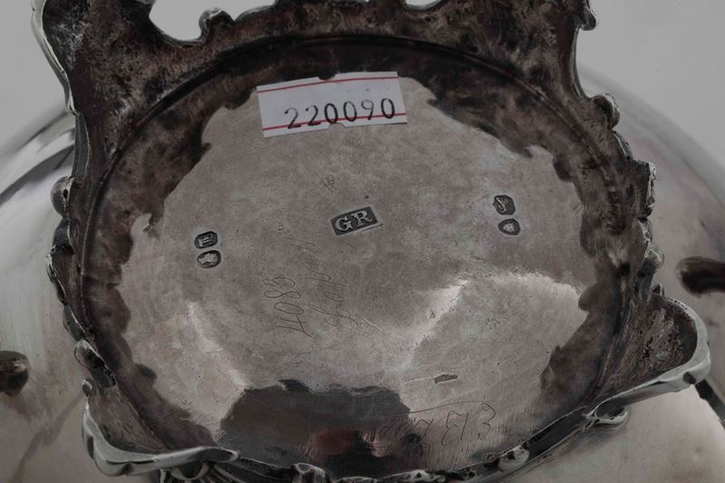 Servizio in argento sterling fuso, sbalzato e sagomato. Marchio della città di Londra per l'anno 1846. Argentiere John Richards