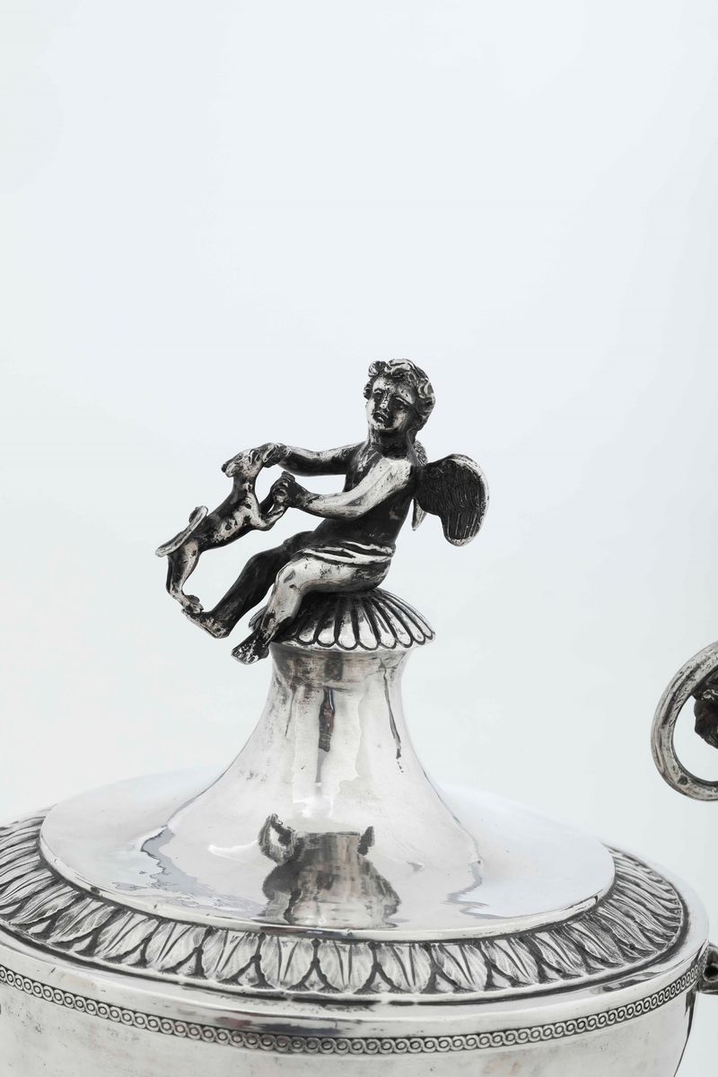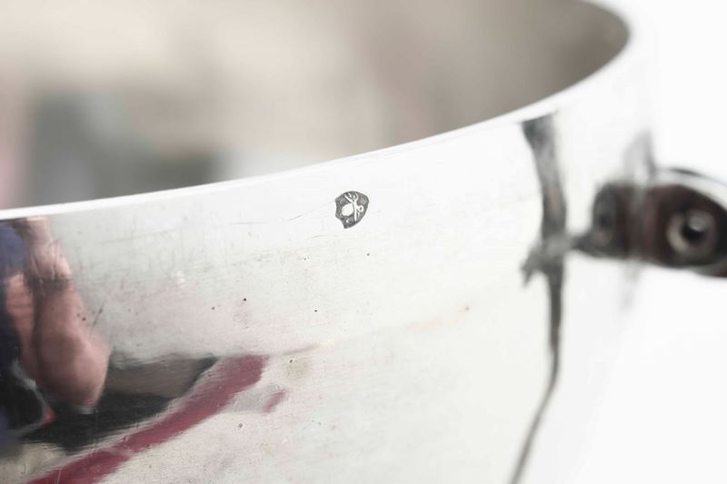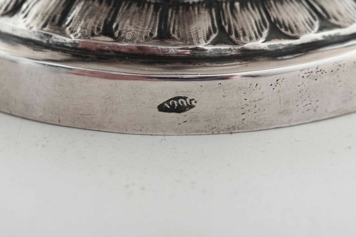 Tazza da puerpera in argento fuso, sbalzato e cesellato. Angelo Giannotti, Roma XIX secolo