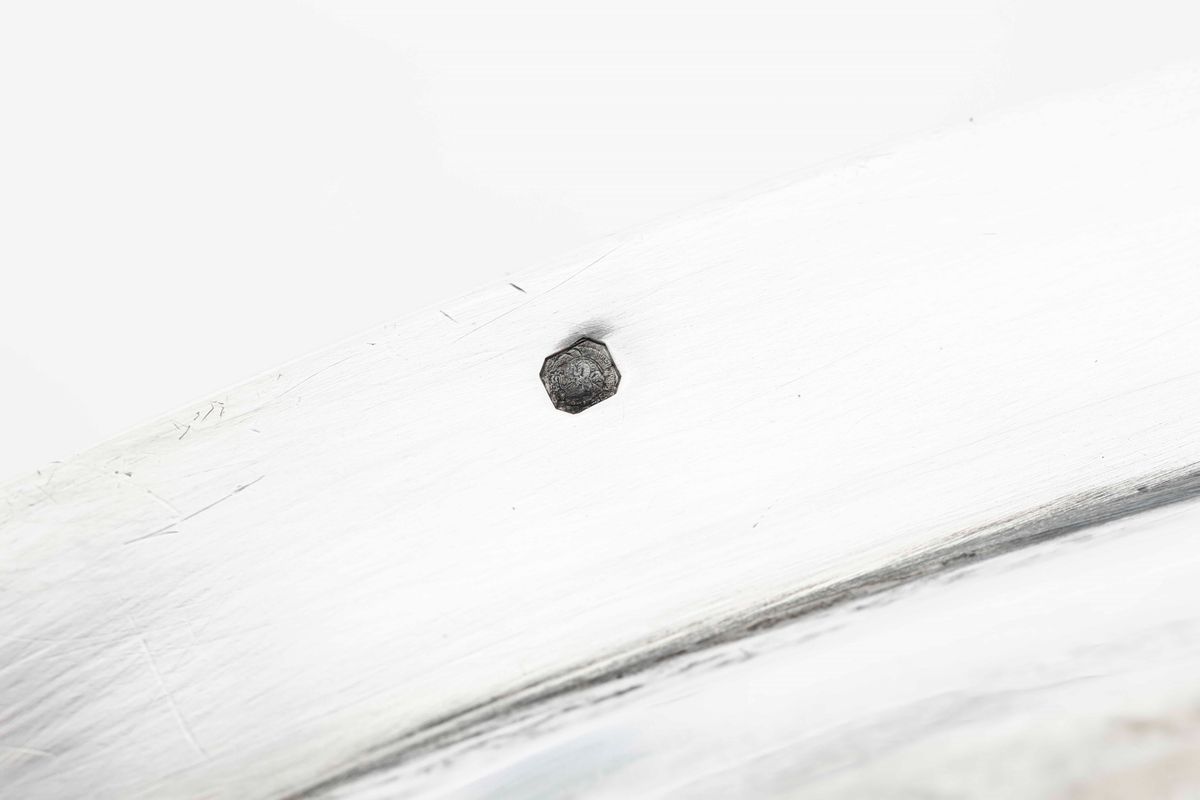 Forma ovale con bordo a nervatura con motivi fogliacei e inciso monogramma AB