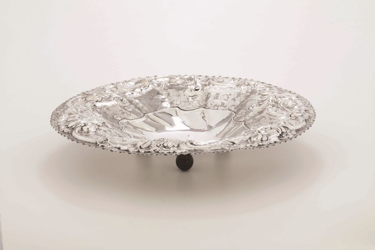 Centrotavola in argento cesellato. Argenteria artistica italiana del XX secolo