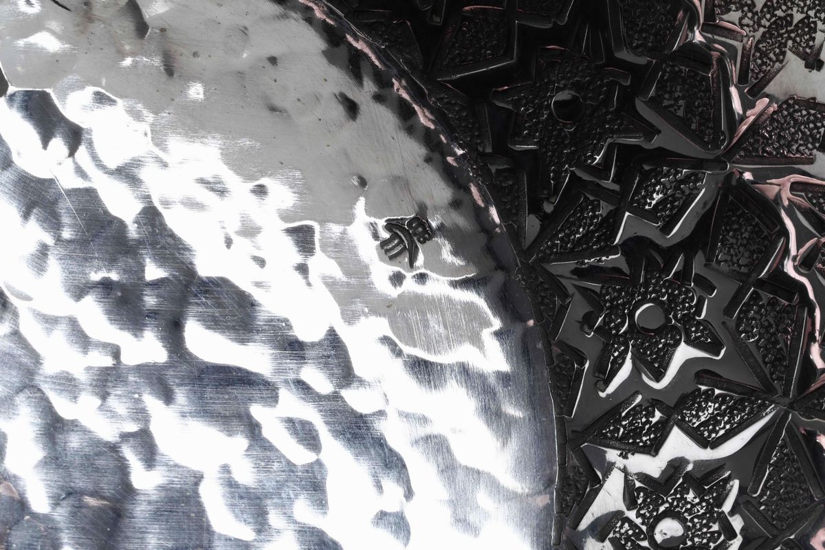 Insieme di quattro piattini in argento cesellato con motivi geometrici Art Deco. Colonie Italiane, Tripoli, Scuola orafi Guido Angelini, prima metà del XX secolo