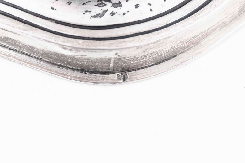 Lucerna in argento fuso, sbalzato e cesellato. Manifattura artistica italiana del XX secolo Nei modi dell'argenteria italiana del XVIII secolo