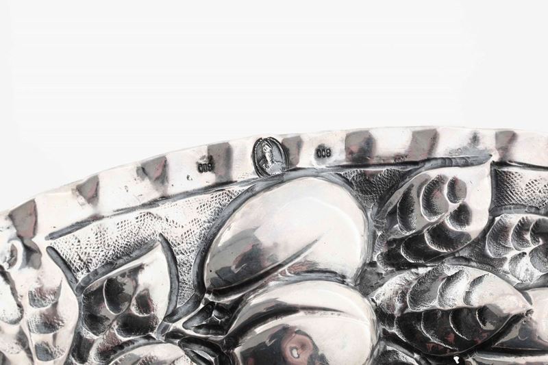 Piatto in argento sbalzato e cesellato. Argenteria artistica italiana del XX secolo