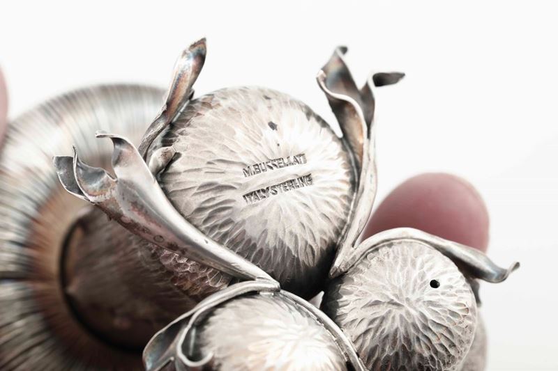 Porta sale e pepe in argento sterling a foggia di cespo di funghi. Argenteria artistica italiana del XX secolo. Maison Federico [..]