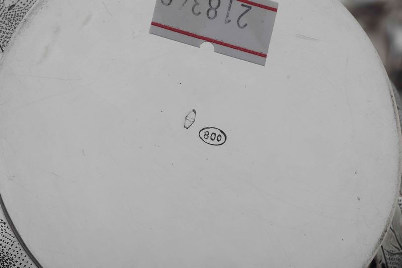 Servizio da tè e caffè in argento fuso e cesellato. Argenteria artistica italiana del XX secolo. Marchio con fascio littorio in uso dal 1935 al 1945. Argentiere Dabbene, Milano