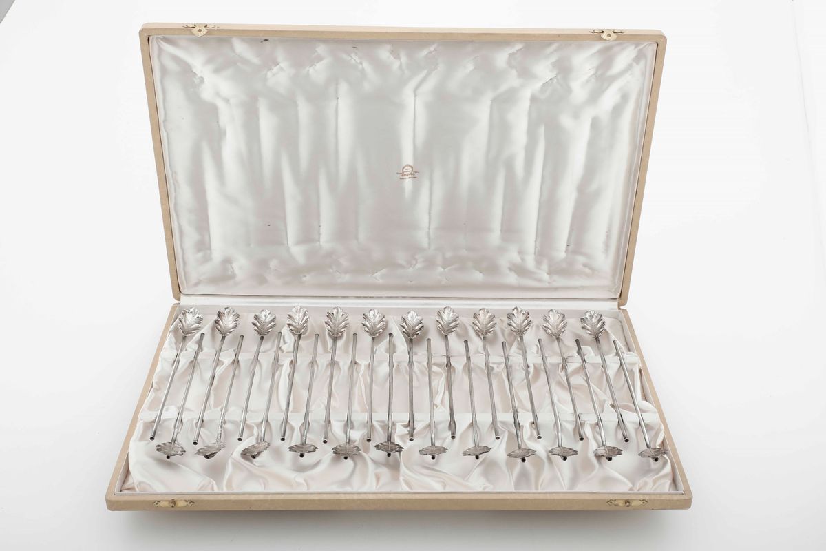 Set di cucchiai per cocktail in argento. Argenteria artistica italiana del XX secolo. Argenteria Clementi, Bologna per Mario [..]