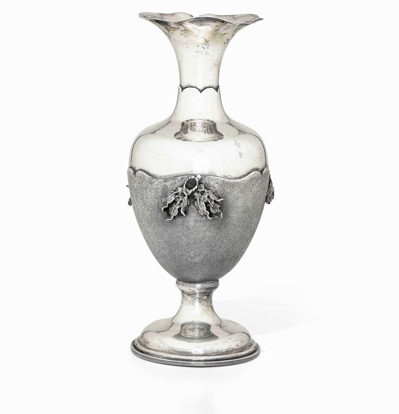 Vaso in argento fuso e cesellato. Argenteria artistica italiana del XX secolo