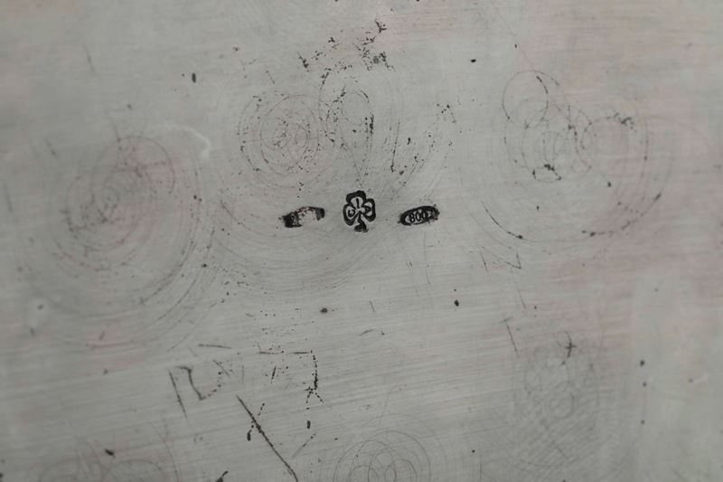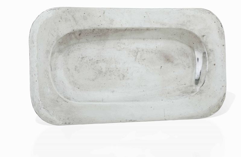 Vassoio rettangolare in argento sbalzato. Argenteria artistica italiana del XX secolo. Argentiere Genazzi Milano