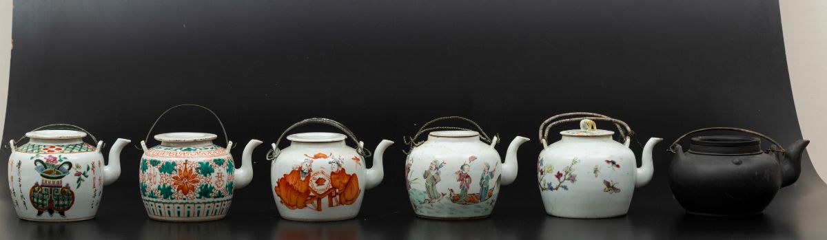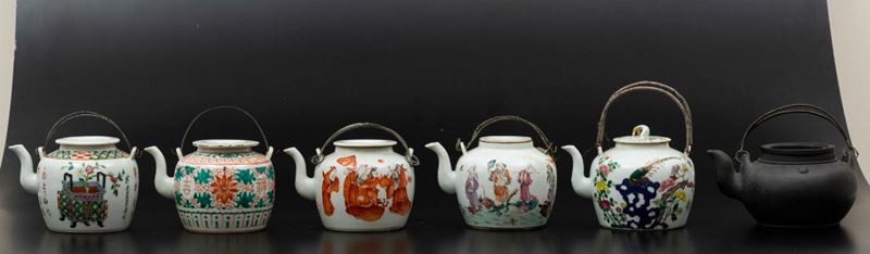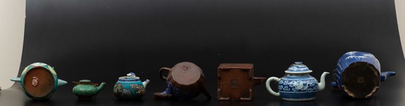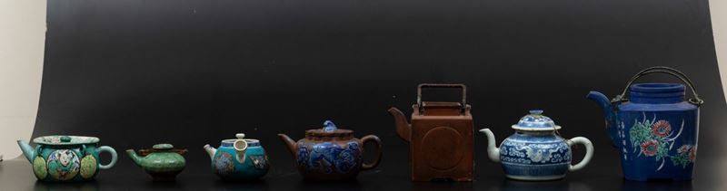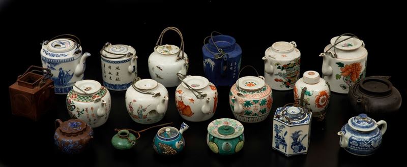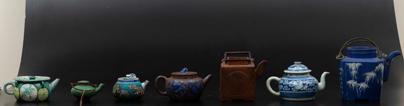 Collezione di diciannove teiere di forme e materiali diversi, Cina, XIX-XX secolo