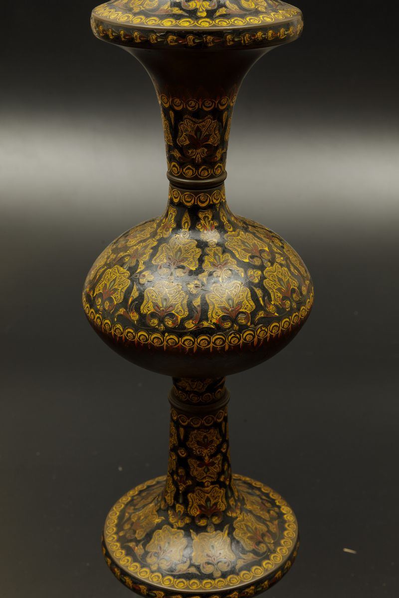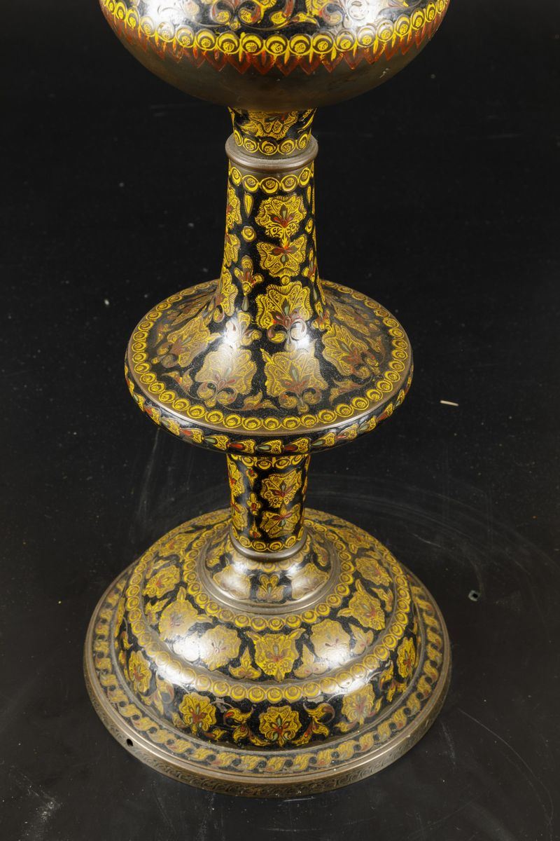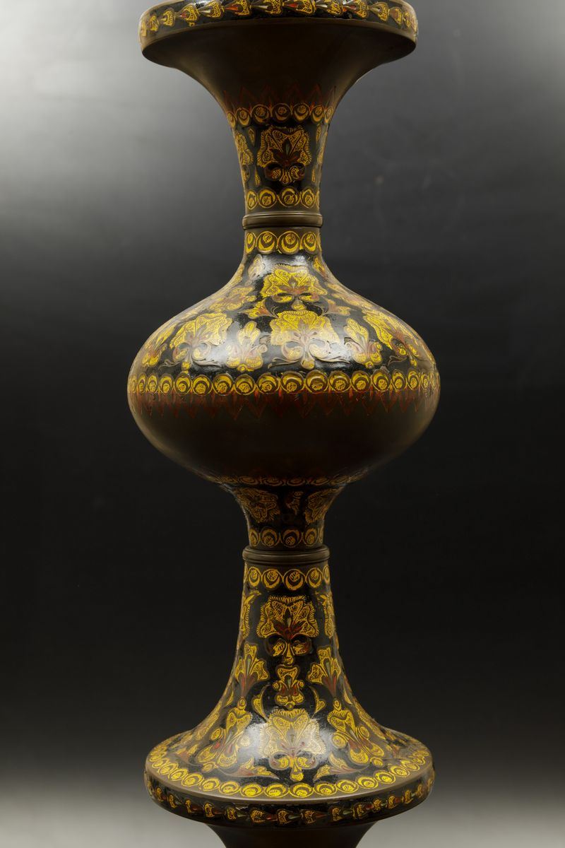 Colonna in bronzo laccata con decori floreali, India, XIX secolo