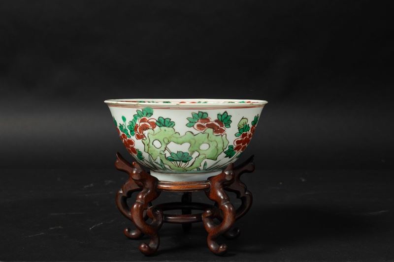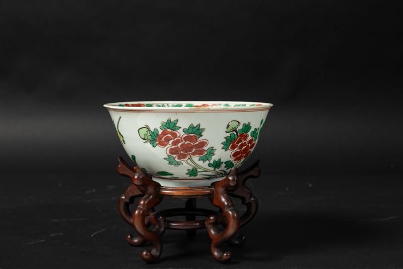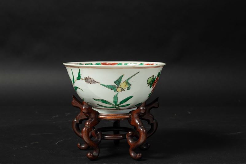 Coppa in porcellana Wucai con decoro naturalistico, Cina, Dinastia Qing, epoca Kangxi (1662-1722)