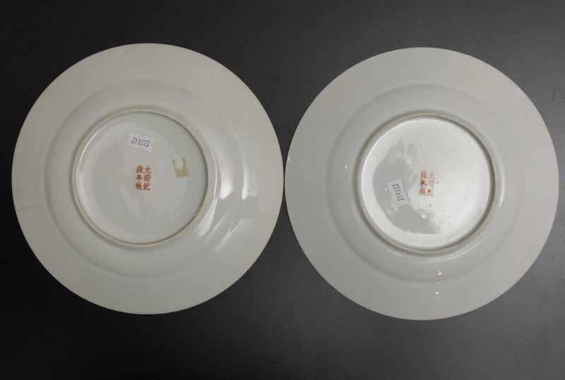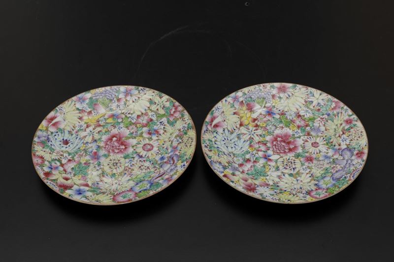 Coppia di piatti in porcellana con decoro Millefleurs, Cina, Dinastia Qing, XIX secolo