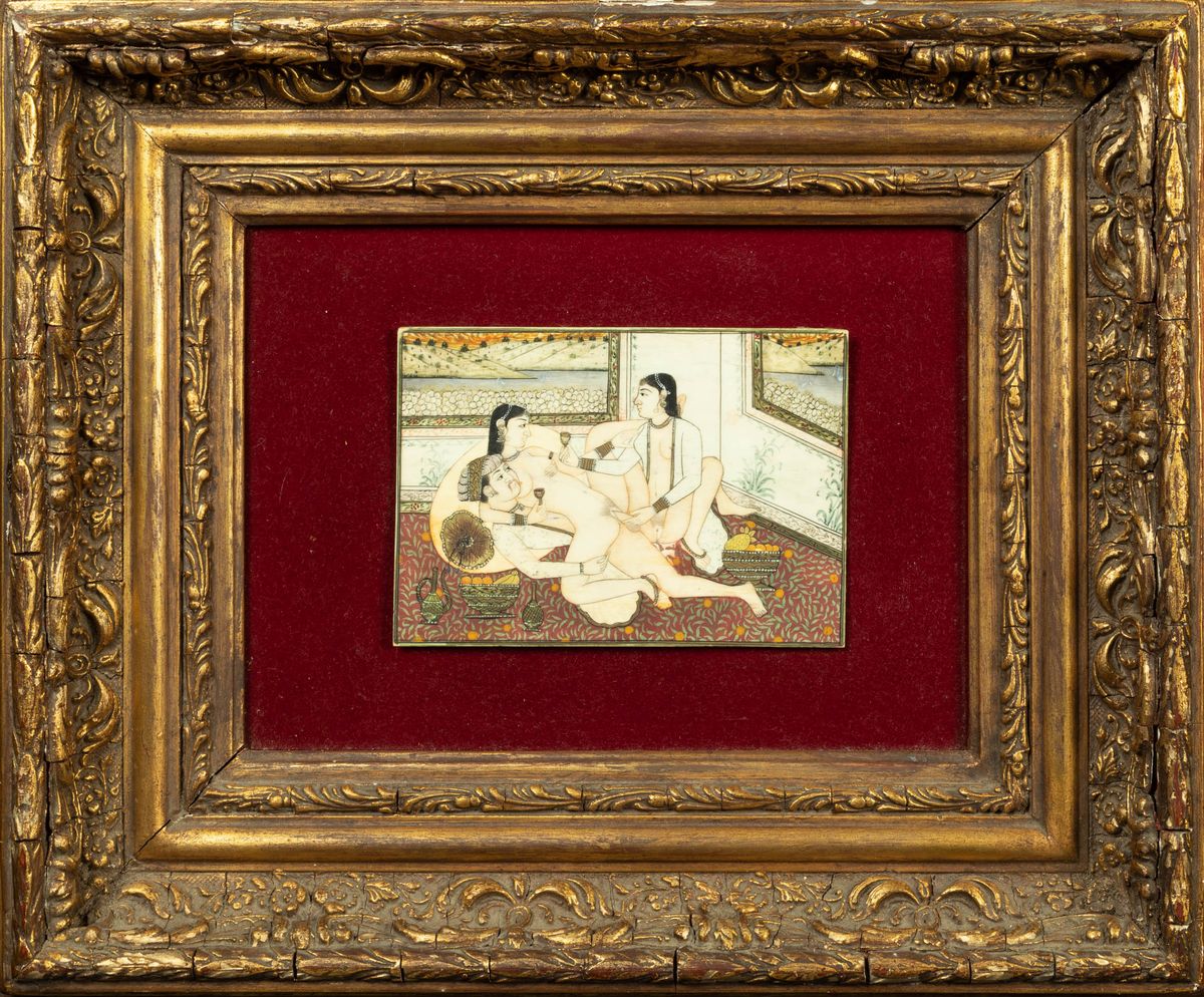 Dipinto su avorio raffigurante scena erotica, India, XIX secolo