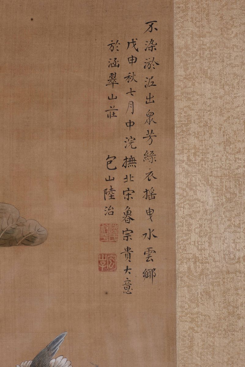 Dipinto su seta a soggetto naturalistico con uccellini e iscrizione, Cina, Dinastia Qing, XIX secolo