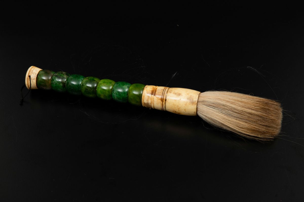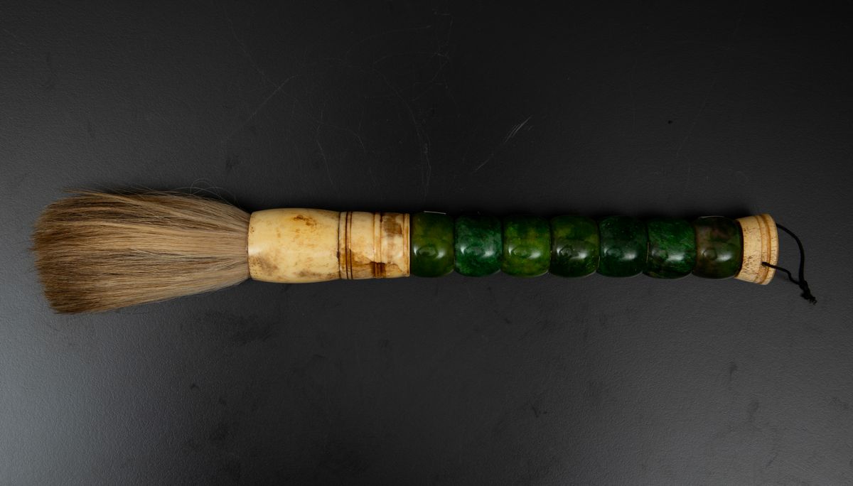 Grande pennello con manico in giada spinacio e osso, Cina, XX secolo