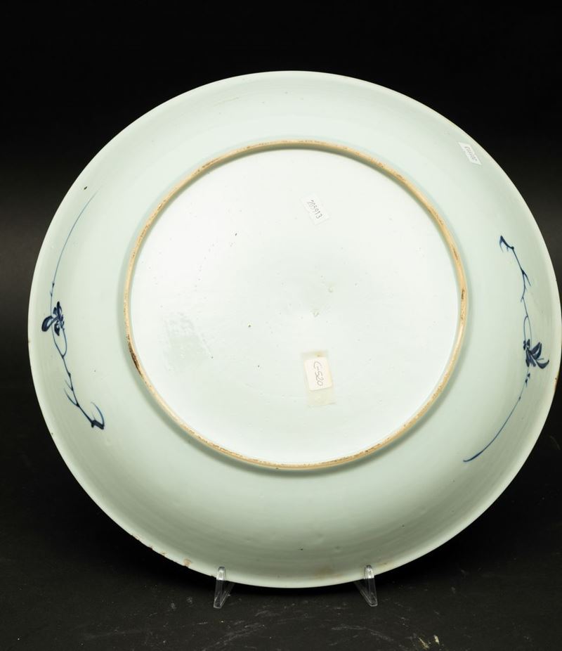 Grande piatto in porcellana bianca e blu con decori vegetali, Cina, Dinastia Qing, epoca Kangxi (1662-1722)