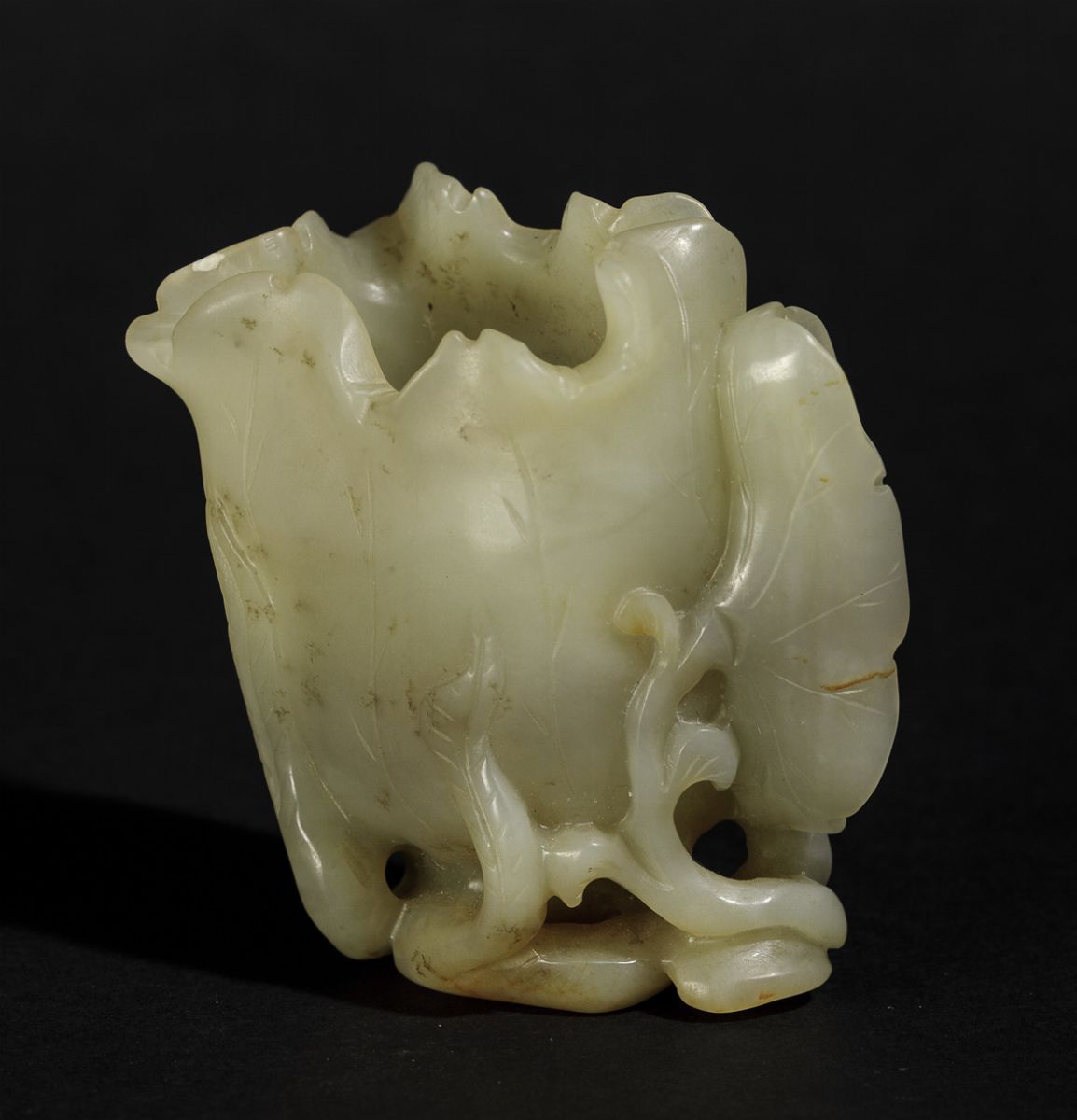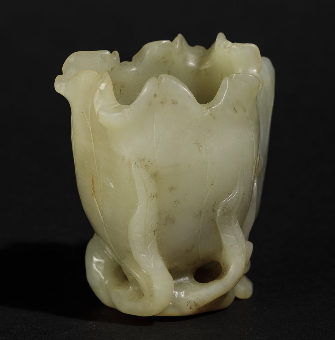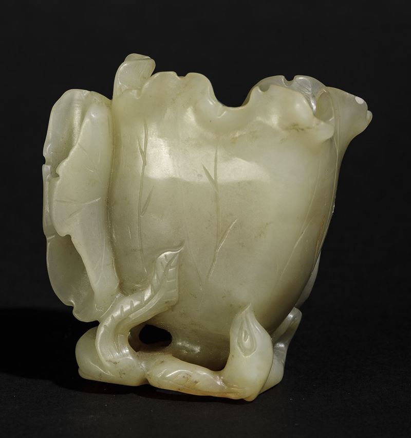 Piccola coppa da libagione a foggia di fiore scolpita in giada, Cina, Dinastia Qing, epoca Qianlong (1736-1796)