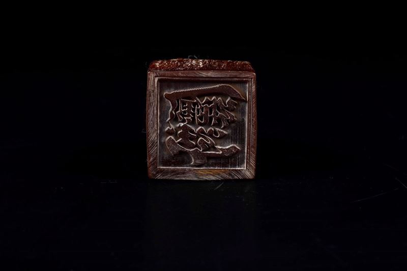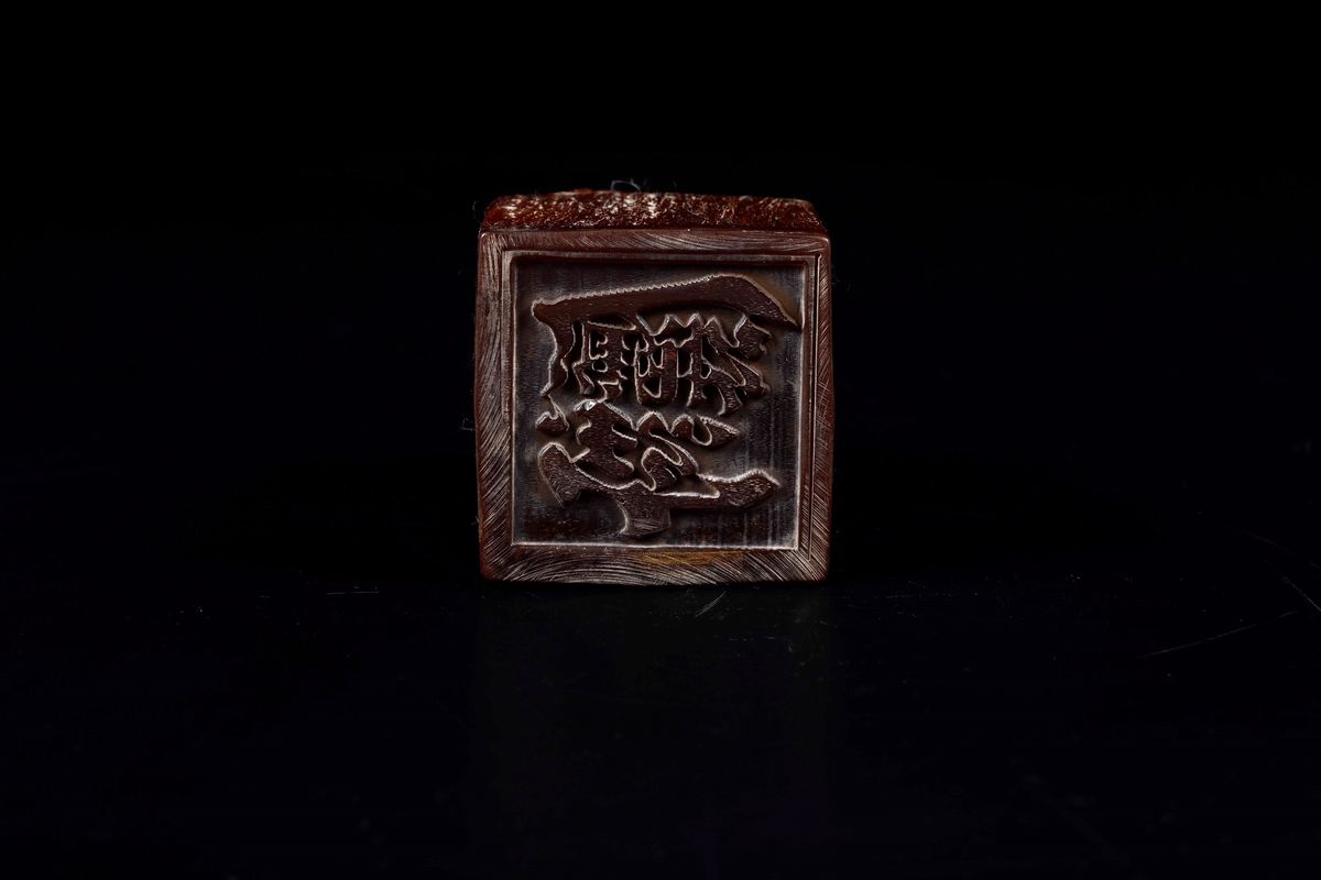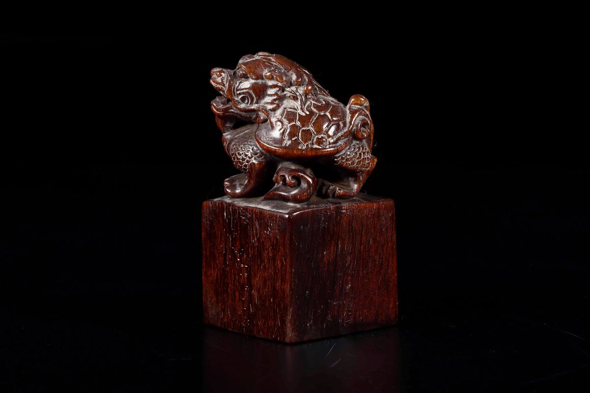 Sigillo scolpito in corno con figura di drago, Cina, Dinastia Qing