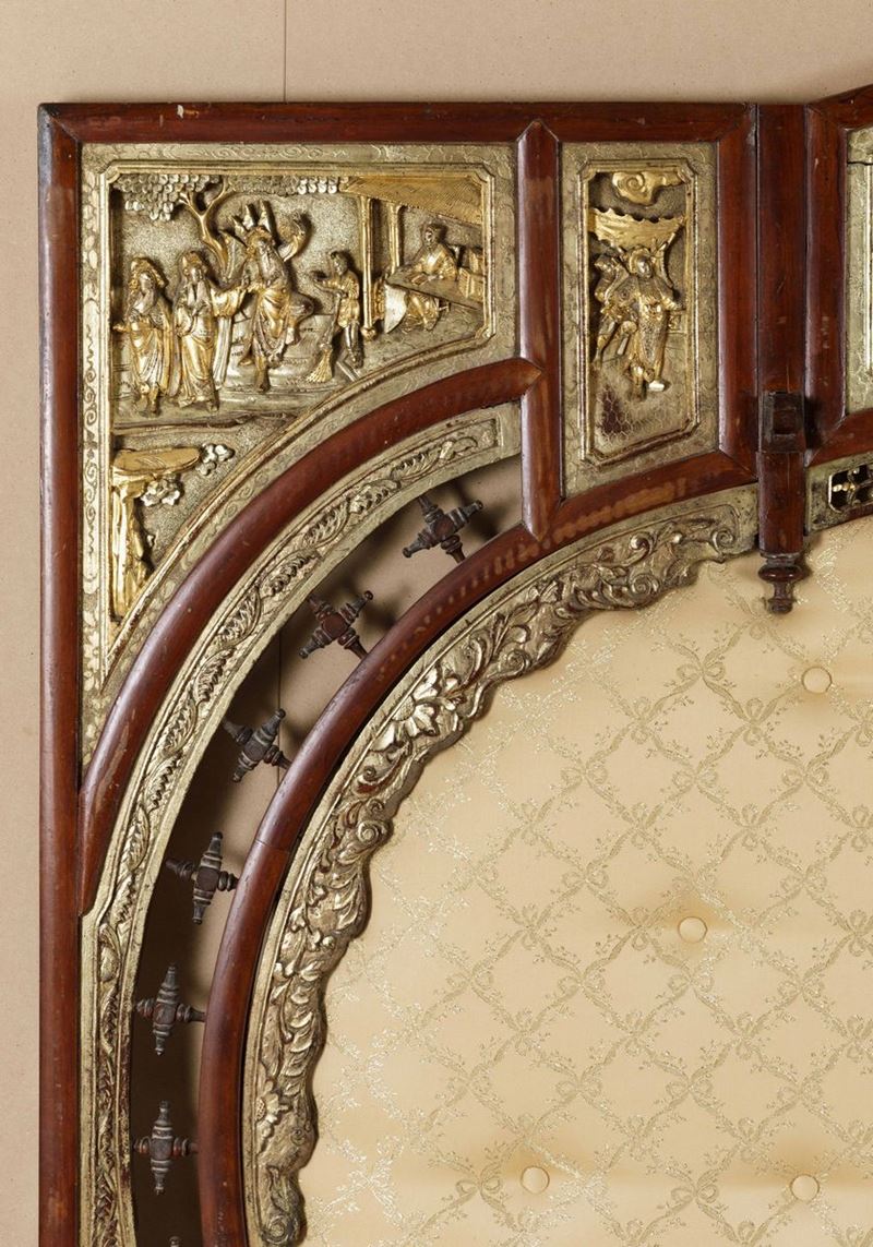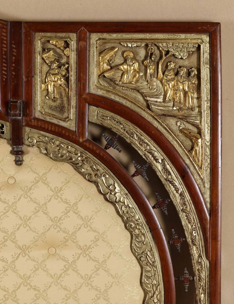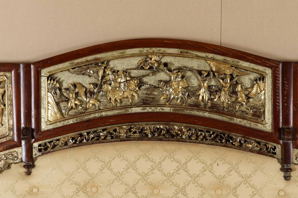 Testata di letto in legno intagliato e dorato con scene di vita comune, Canton, Cina, Dinastia Qing, XIX secolo